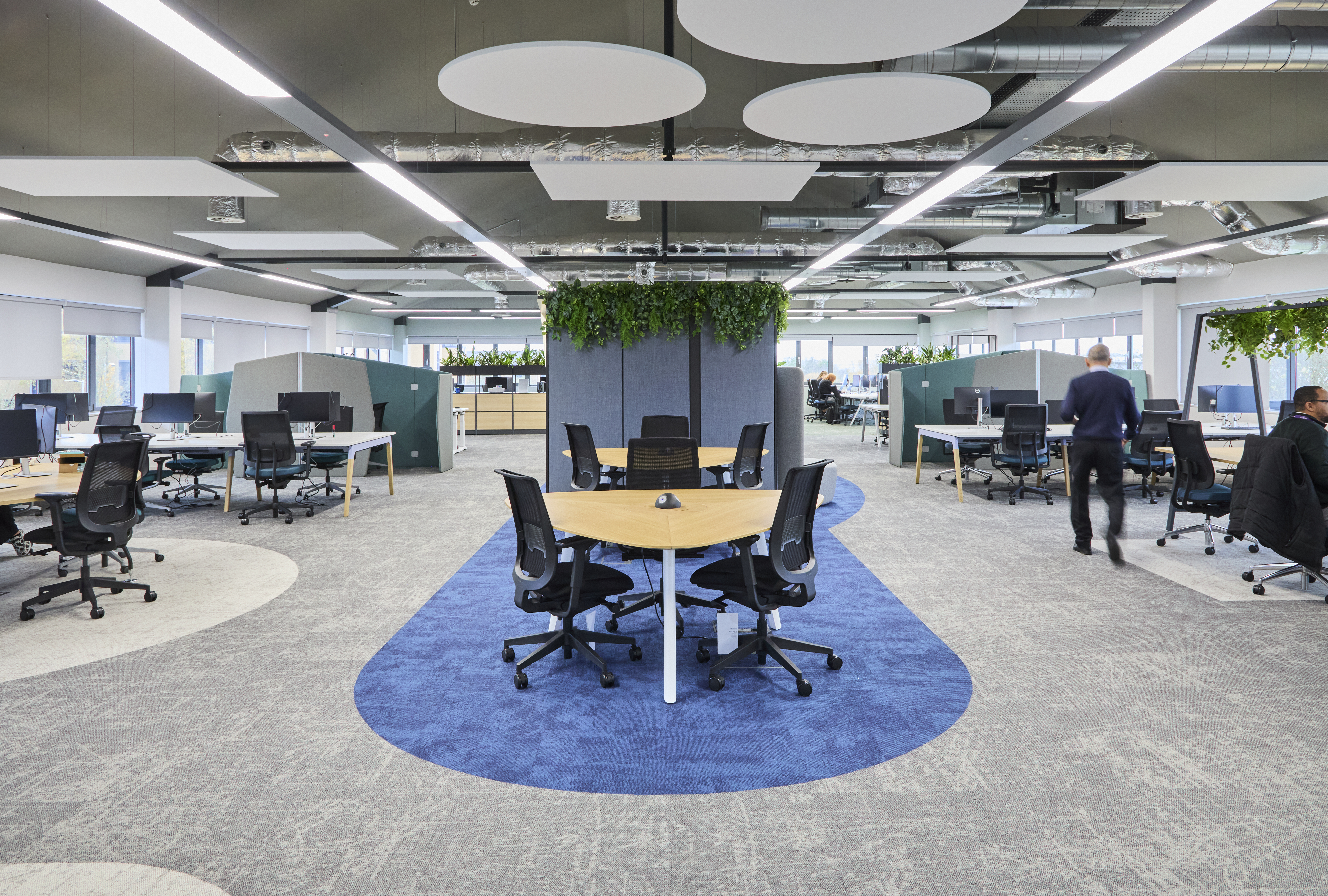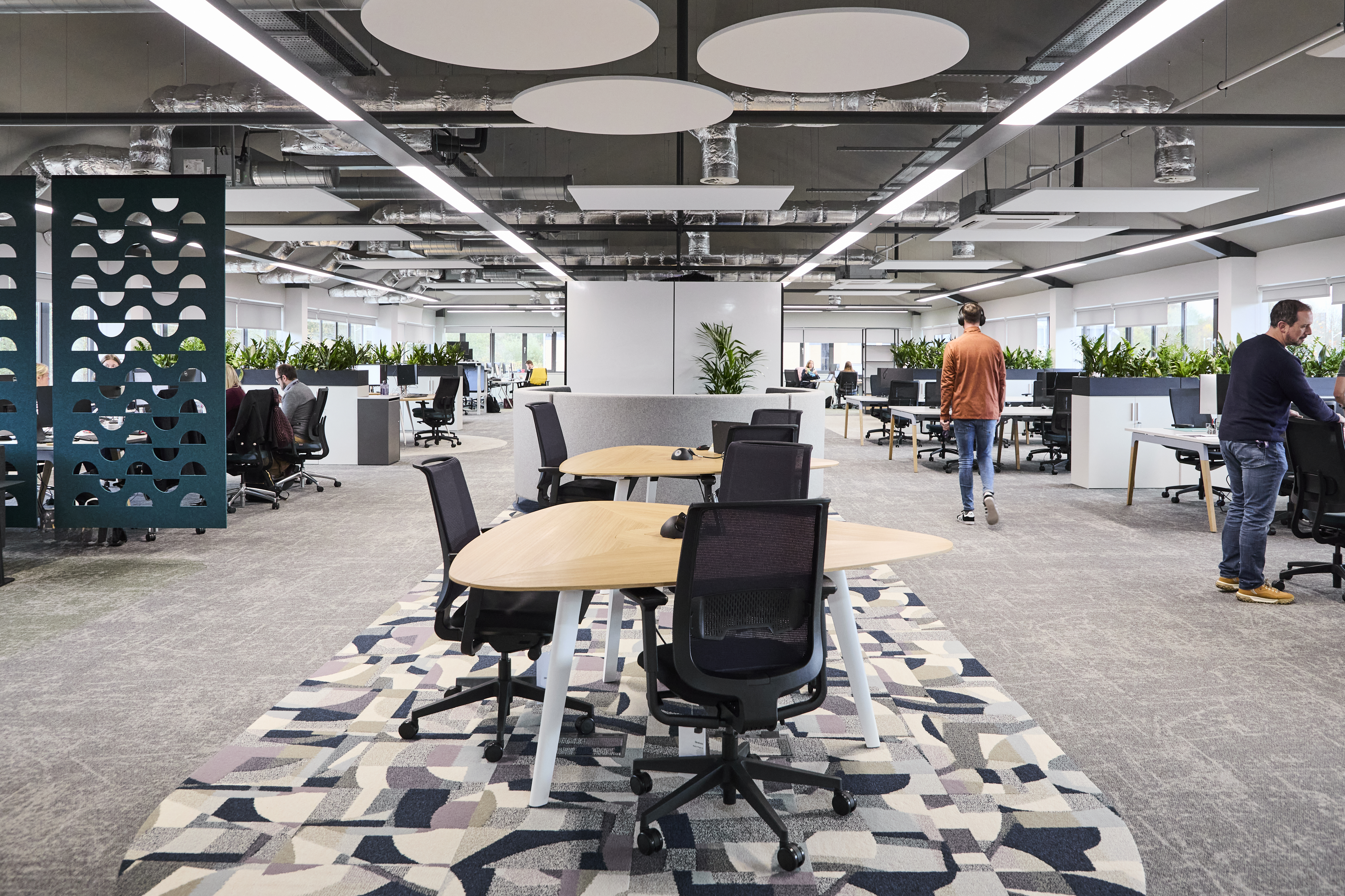Central to the design was the need to organise a large open-plan floorplate into a series of distinct but visually coherent zones. Rather than relying on partitions, the design team used surface changes to signal shifts in function, with flooring acting as both a spatial and sensory guide.