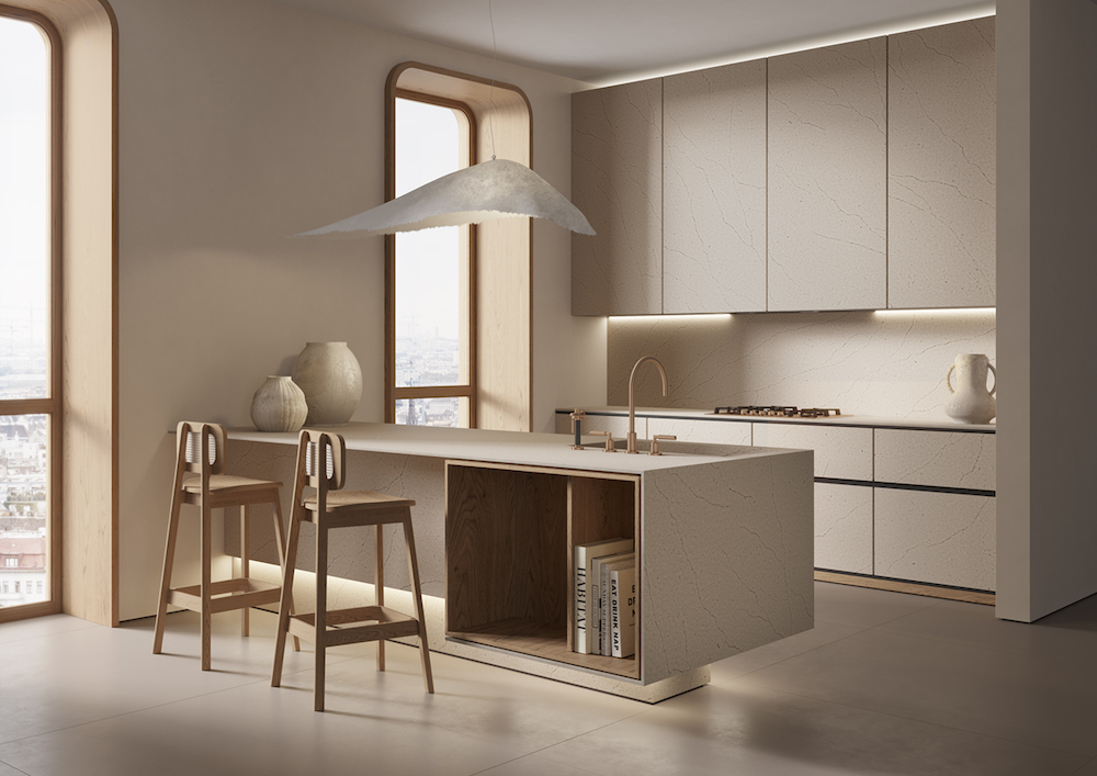 Stone Italiana has its own internal initiative known as Green Vision and has promoted its own recycled material, Cosmolite since 2020 which comes which comes in slab format. It is produced using inert materials that are 100% recycled pre-consumer minerals and, other than quartz and the resin part of the polymeric, the binder originates from renewable vegetable sources obtained from non-Genetically Modified (non-GM) and Identity-Preserved (IP) plants.