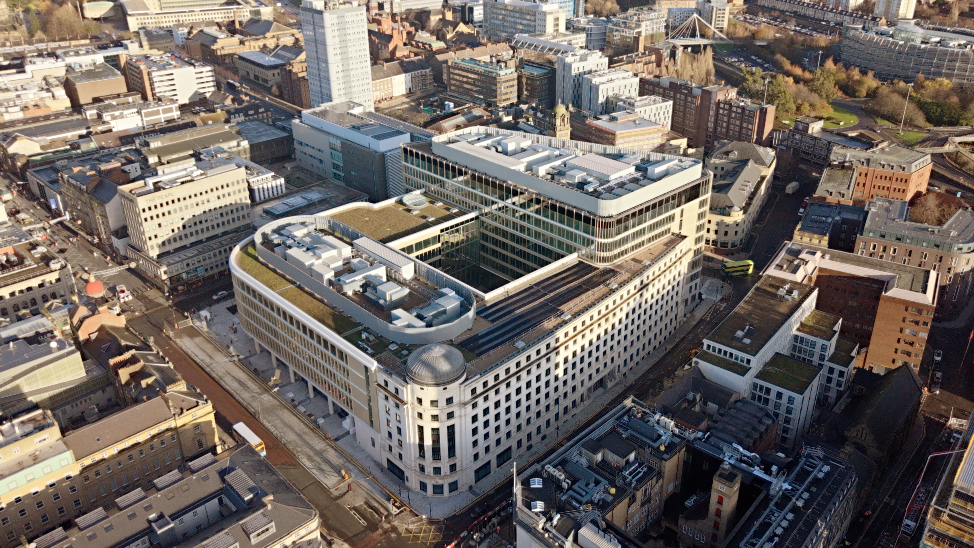 The completed building will serve as HMRC’s largest regional hub and acts as the focal point of the wider Pilgrim’s Quarter regeneration, combining large-scale commercial workspace with the preservation of one of Newcastle’s most recognisable historic façades.