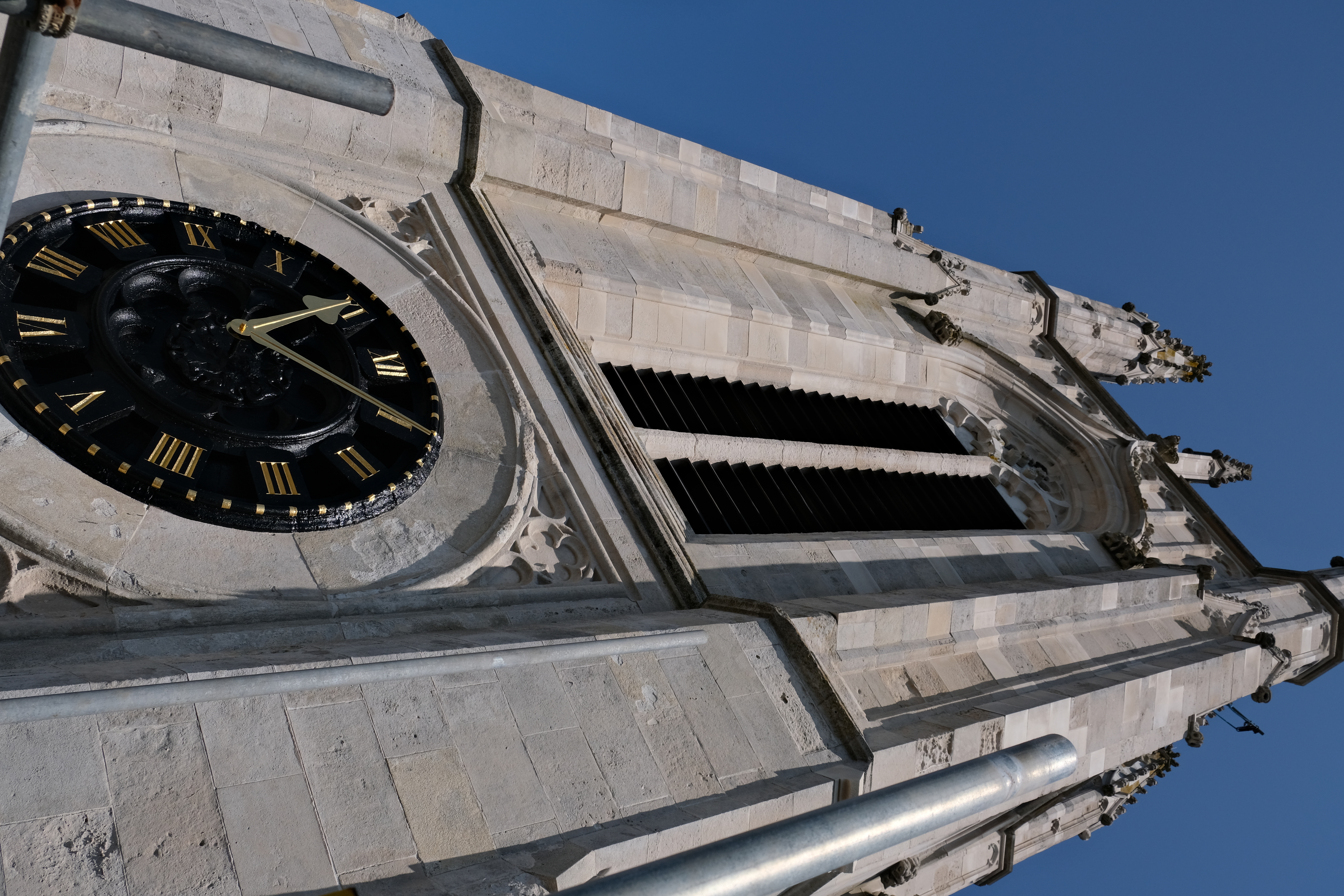 Early phases focused on urgent roof and structural repairs. The aisle roofs and mid-tier tower roofs were replaced in pressed zinc, incorporating modern insulation and new access hatches. Within the building, the nave roof structure was significantly strengthened using specially designed steel plates to ensure it could safely carry required loads.