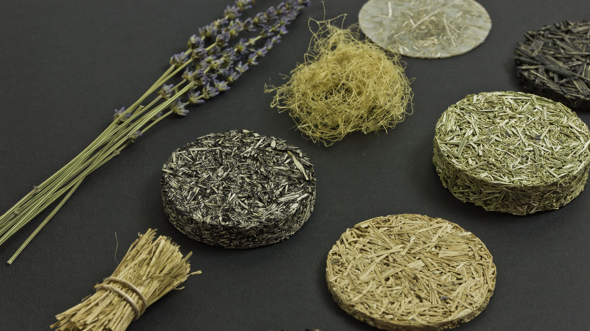 The practice begins with exploration: identifying bio-resources local to a project’s context, from plant fibres and industrial by-products to organic residues. Over an initial three-month research phase, the studio typically delivers multiple material concepts accompanied by sample libraries that allow designers to assess surface qualities, textures and performance potential. Once priorities are agreed, scale-up strategies are developed, including coalition building between suppliers, manufacturers and clients to embed the new materials into commercial production with agreed quality and impact metrics.