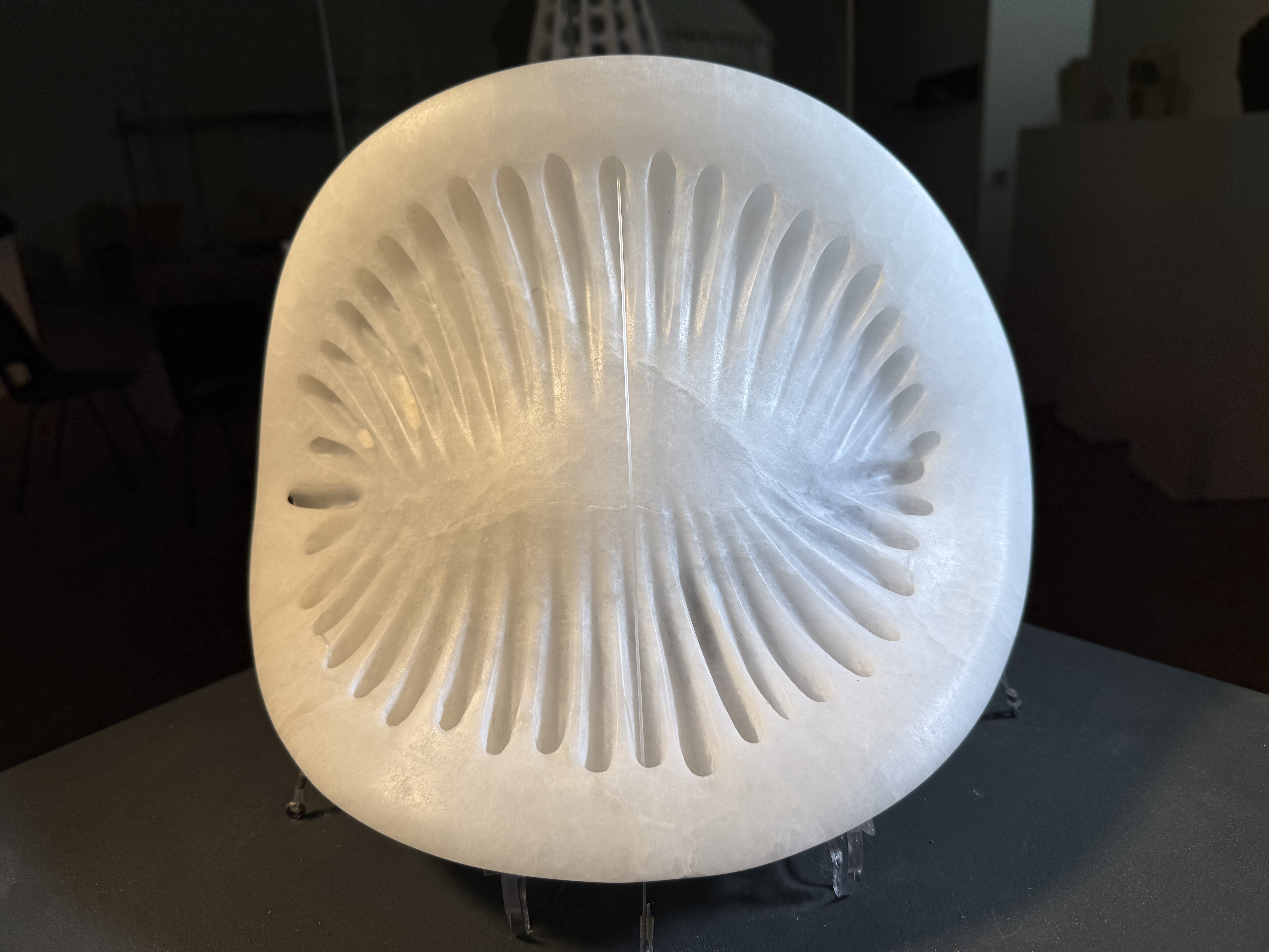 Roger produced another set of stone sculptures for the exhibition, this time in alabaster, and in celebration of the mini but mighty Diatom. A single-cell algae with a silica casing that occurs worldwide in salt and fresh water, and anywhere that is damp, Campylodiscus Hibernicus, is so numerous that it contributes 20-50% of the world’s oxygen and carbon capture. Here’s to more Diatoms!