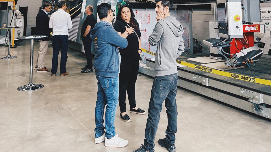 Visitors talk shop with D Zambelis Directors Dimitri and Stella Zambelis during the D Zambelis open days at the company's new showroom and demonstration area at its Essex headquarters.