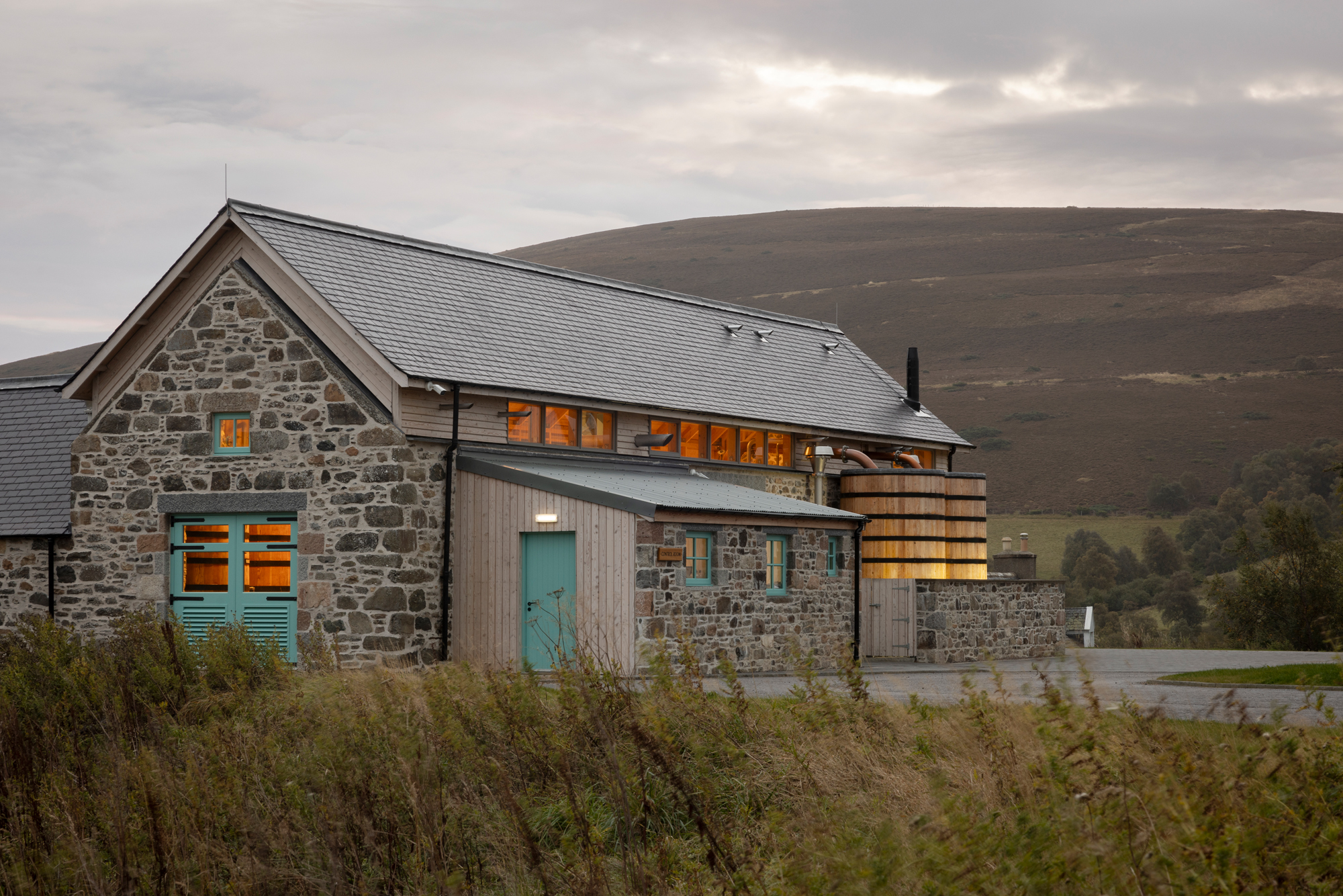 The development transforms the ruined 1849 steadings at Inverharroch Farm into a working single-malt whisky distillery — the first legal whisky production in the area for more than 170 years. Nestled on the edge of the Cairngorms National Park, the area was once a hotbed of Jacobite rebels and smugglers, as well as local farmers, many of whom sought to supplement their minimal livelihoods by producing ‘Uisge Beatha’, or ‘ Water of Life’...also known as Whisky.