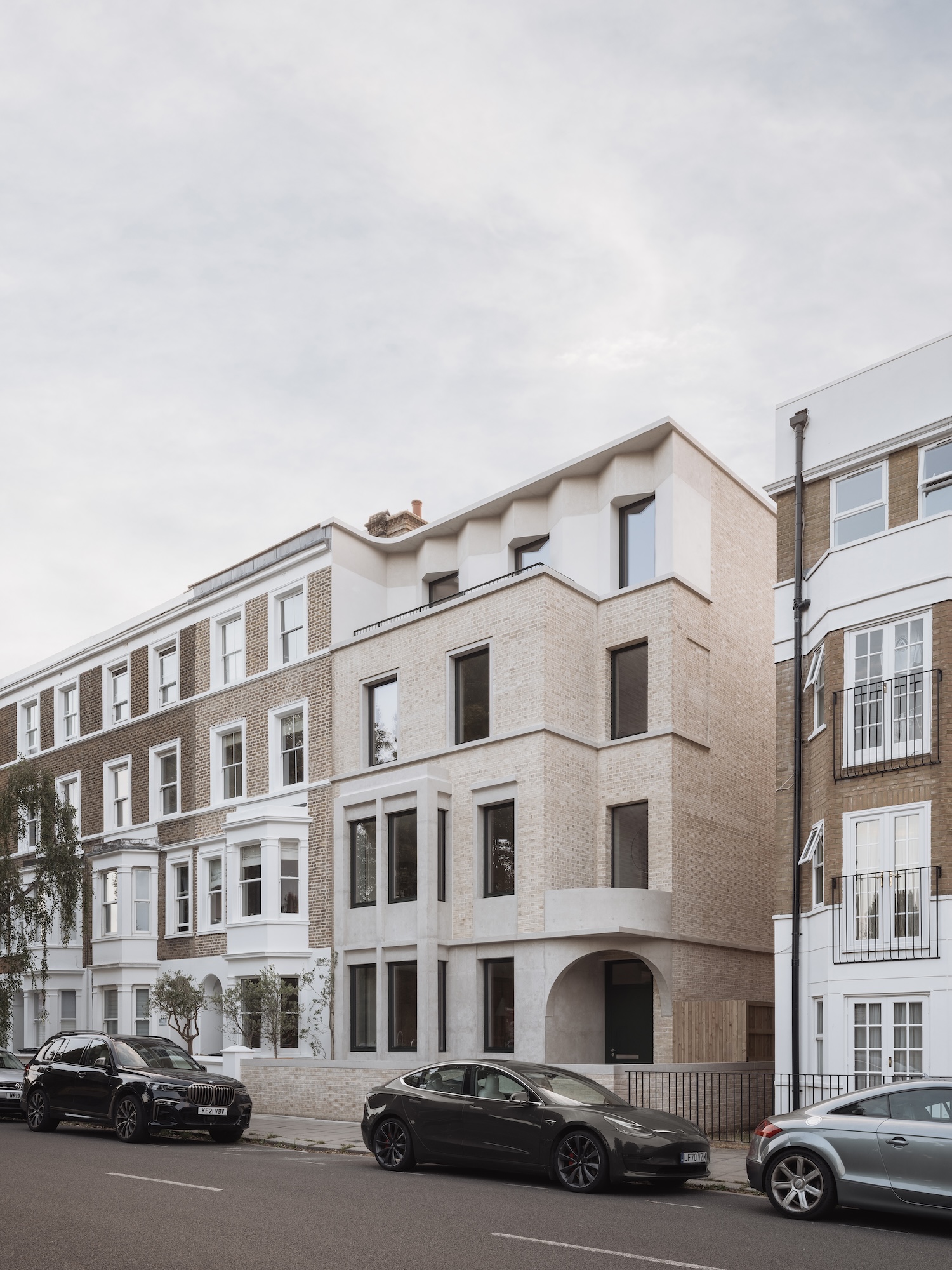 Having bought the original house a decade ago, owners Rowan and Angelina Bamford seized upon the chance to purchase the neighbouring Expedition House, a former 1930s Territorial Army building. This offered the rare opportunity in London of allowing the architects to extend the original house sideways. What began as a refurbishment evolved into a four-storey intervention that almost doubles the usable footprint, creating nearly 500m² of internal space across old and new structures.