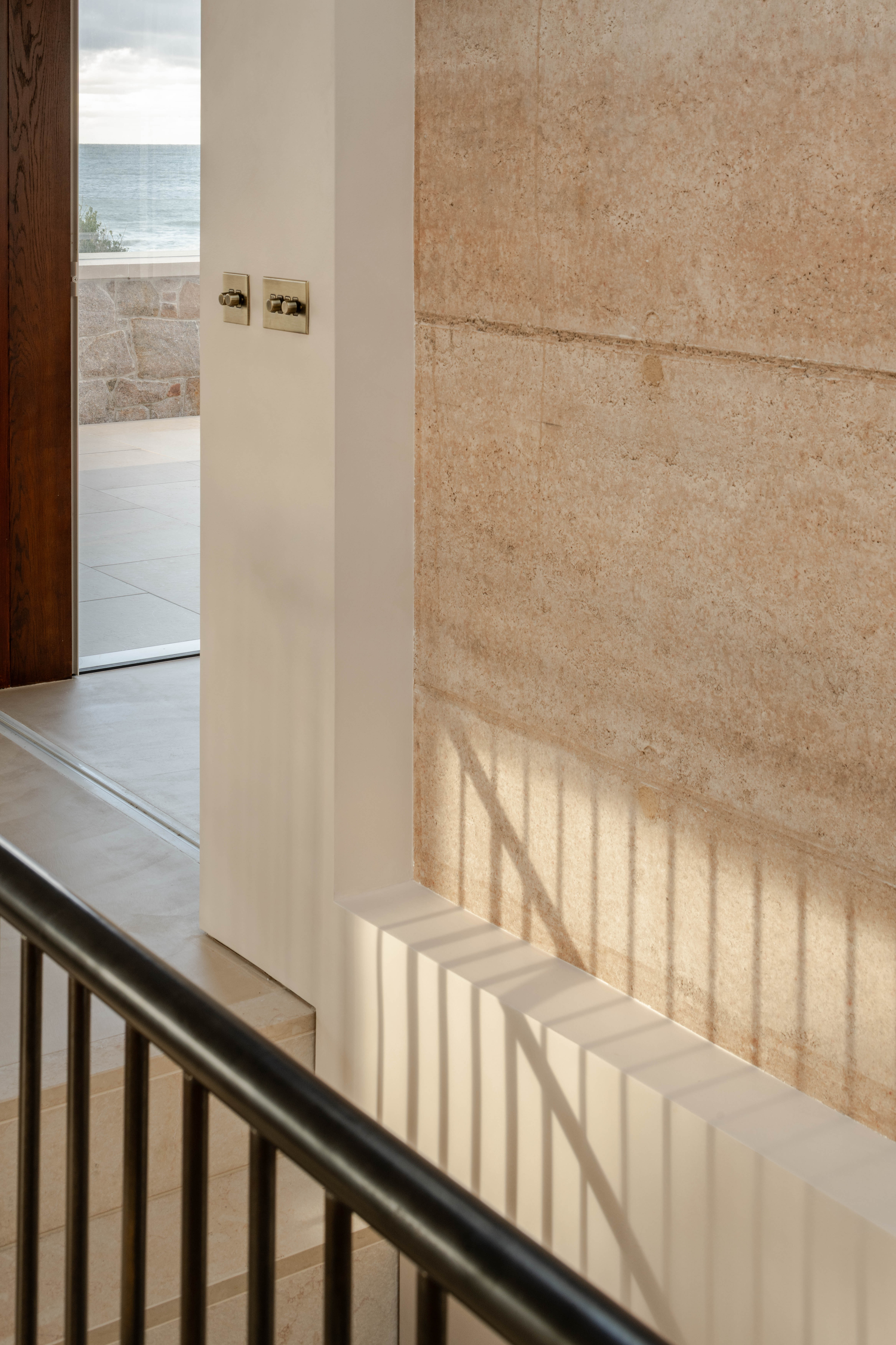 Designed for a client returning to the island after several years in London, the house deliberately departs from Jersey’s conventional domestic language. Instead, it embraces an elemental architectural expression, grounded in the textures, tones and geology of its surroundings. “We wanted the house to feel rooted in its environment,” says James Owen, director at Fieldwork Architects. “The arrangement connects closely with the land and sea, framing views and using natural materials throughout to create a sense of protection and belonging.”