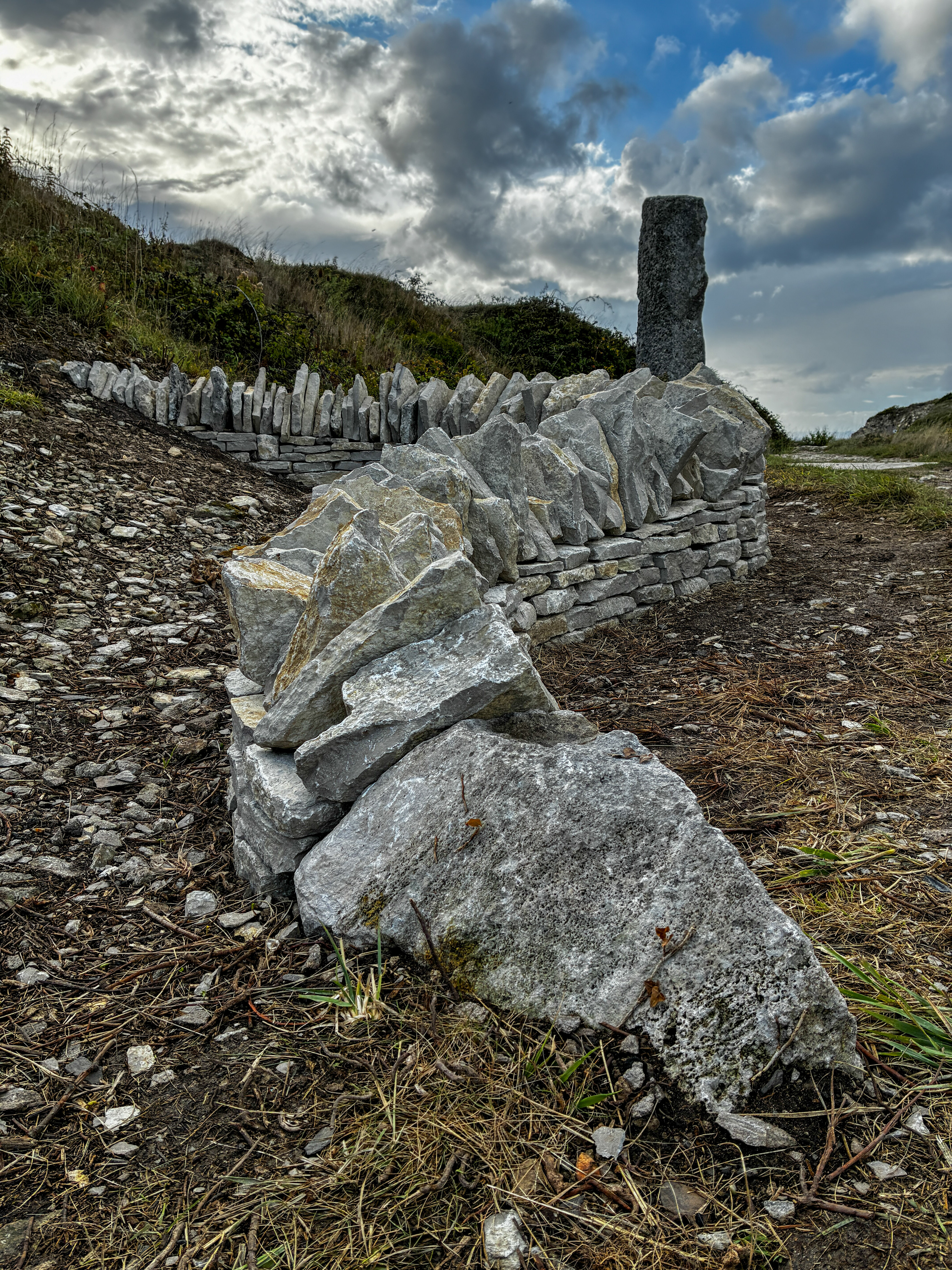 The Project, sponsored by Dorset DSWA, was developed in collaboration with Peter Curtis and Phyllis Warren of the Dorset Branch of the Dry-Stone Walling Association, Hannah Sofaer, Creative Director of Portland Sculpture & Quarry Trust, and with valued contributions of fellow artist Ros Burgin MRSS and local naturalist Bob Ford.