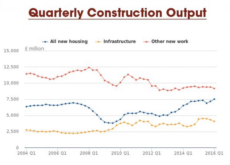 Figures for construction output for the quarter are not so encouraging. The Office for National Statistics report of 13 May shows a drop in new work of 0.6% compared with the previous quarter while repair & maintenance (R&M) decreased by 1.9%.