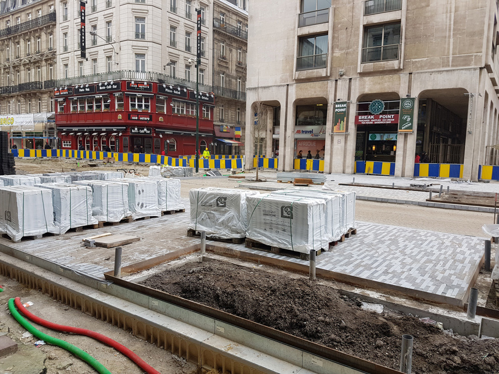 At the moment we are supplying more than 10,000tonnes of material for a complete makeover of the centre lanes (pedestrian area) at the heart of Brussels. This is one of the largest ongoing natural stone paving jobs of its kind (see photo at the bottom).