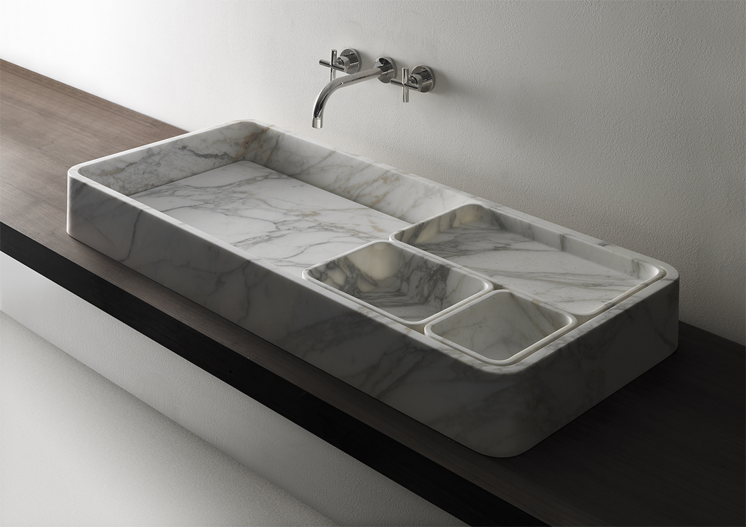 Kreoo is an Italian company that makes tasteful furniture in marble. Its latest launch is a bathroom sink inspired by the bento box of the food industry.