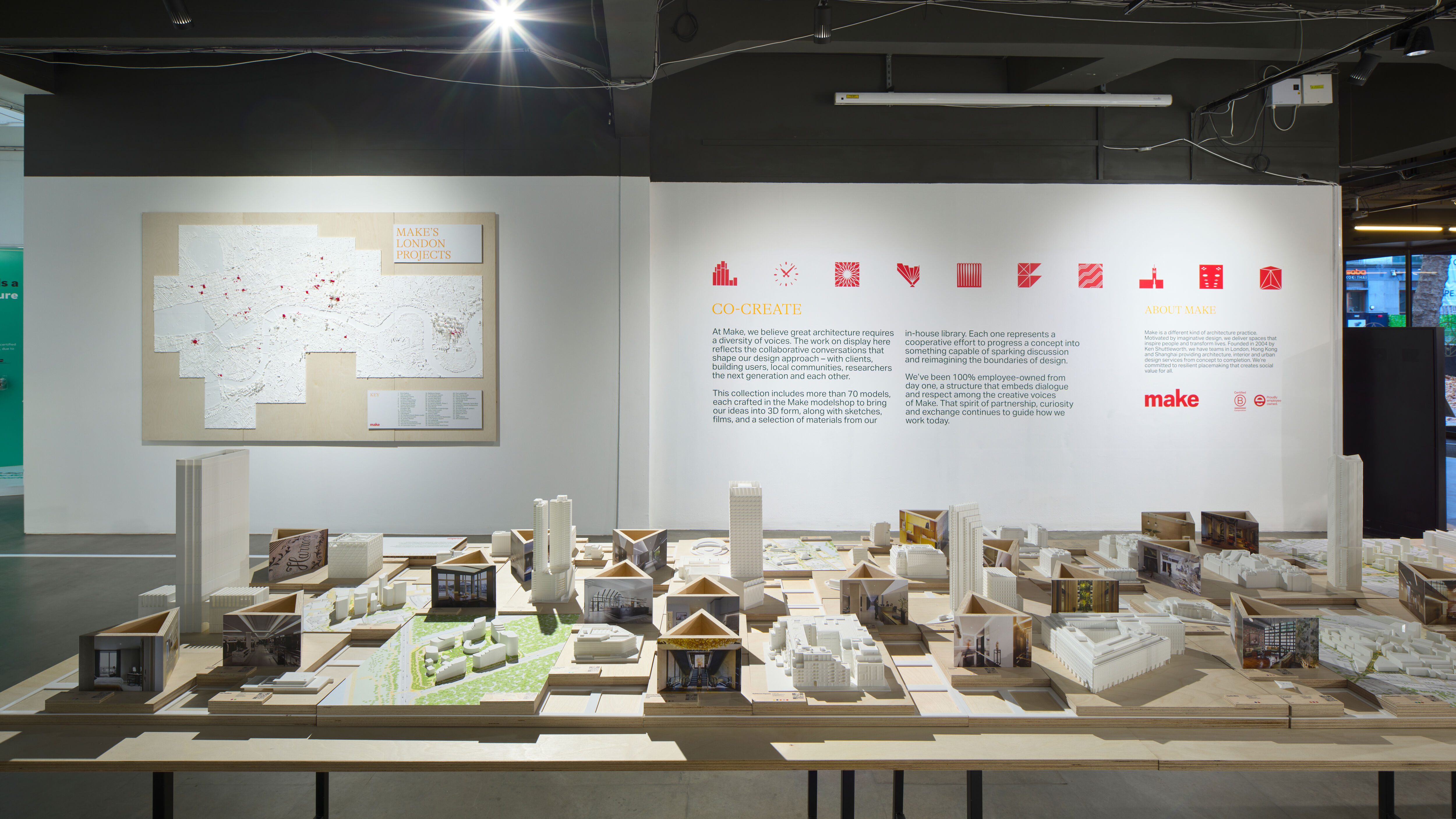 Make is known for its investigative use of materials and its willingness to interrogate both traditional and emerging construction methods. CO-CREATE foregrounds this aspect of the practice’s work, with displays focused on material samples, research prototypes and mock-ups that illustrate how stone, brick, timber and hybrid material systems have shaped the form, performance and identity of Make’s architecture.