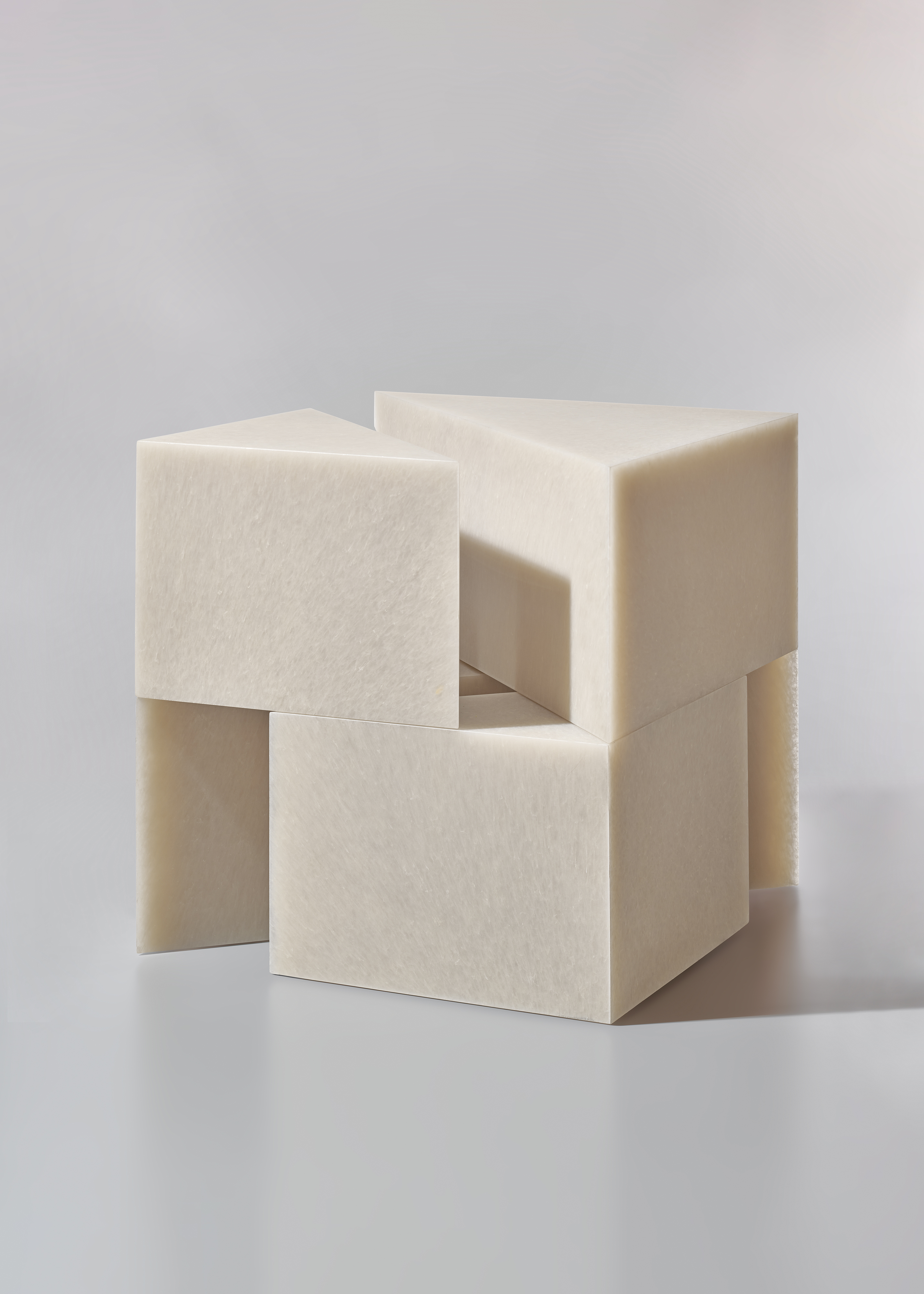 Karlite is Plasticiet’s industrially inspired range, designed as a recycled alternative to resin and other solid surface boards. Combining reclaimed plastics such as polycarbonate with finely chosen mineral pigments to create durable, semi‑translucent panels, the range takes a step away from looking like a recycled material. Its palette, which includes Chalk, Glacial, Jade and Sienna, evoke materials more commonly associated with marble or minerals, yet these boards are born of reuse and crafted to last.