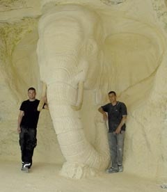 In order to get the scale of the animal, Oliver simply looked at photographs of elephants and drew what he intended to produce on the rock face (see the picture on the previous pages). He did not even make preliminary sketches before setting out his ideas on the stone.