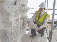 With scaffolding up, various cleaning systems were employed. A Tensid system was used to remove copper staining left by lightning conductors (a new lightning protection system has been installed by Bakers), while superheated water, gentle abrasive cleaning and nebulous sprays were used elsewhere.