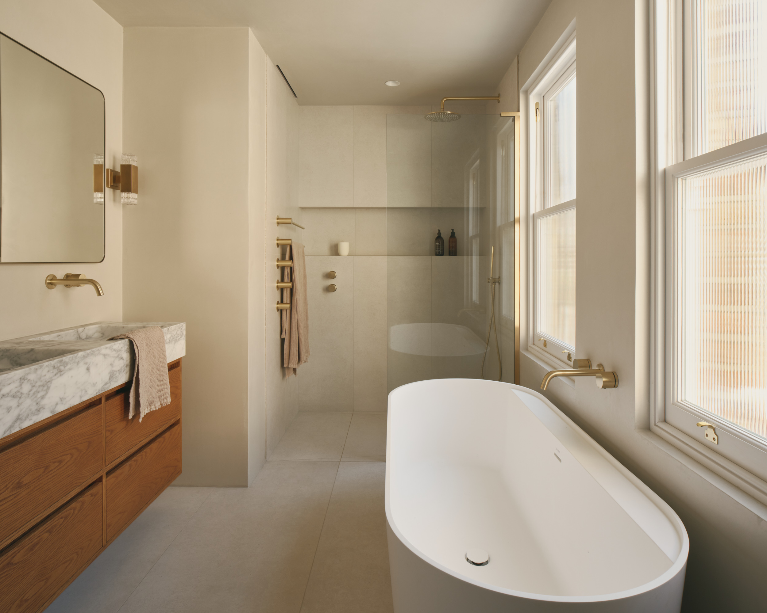 Materials are central to everything we do. We are constantly thinking about how surfaces look, feel, and perform, and how they interact with light and space. Natural stone, timber, plaster, metals, and bespoke finishes dominate our palette, but we also enjoy exploring unconventional materials that bring surprise and delight.