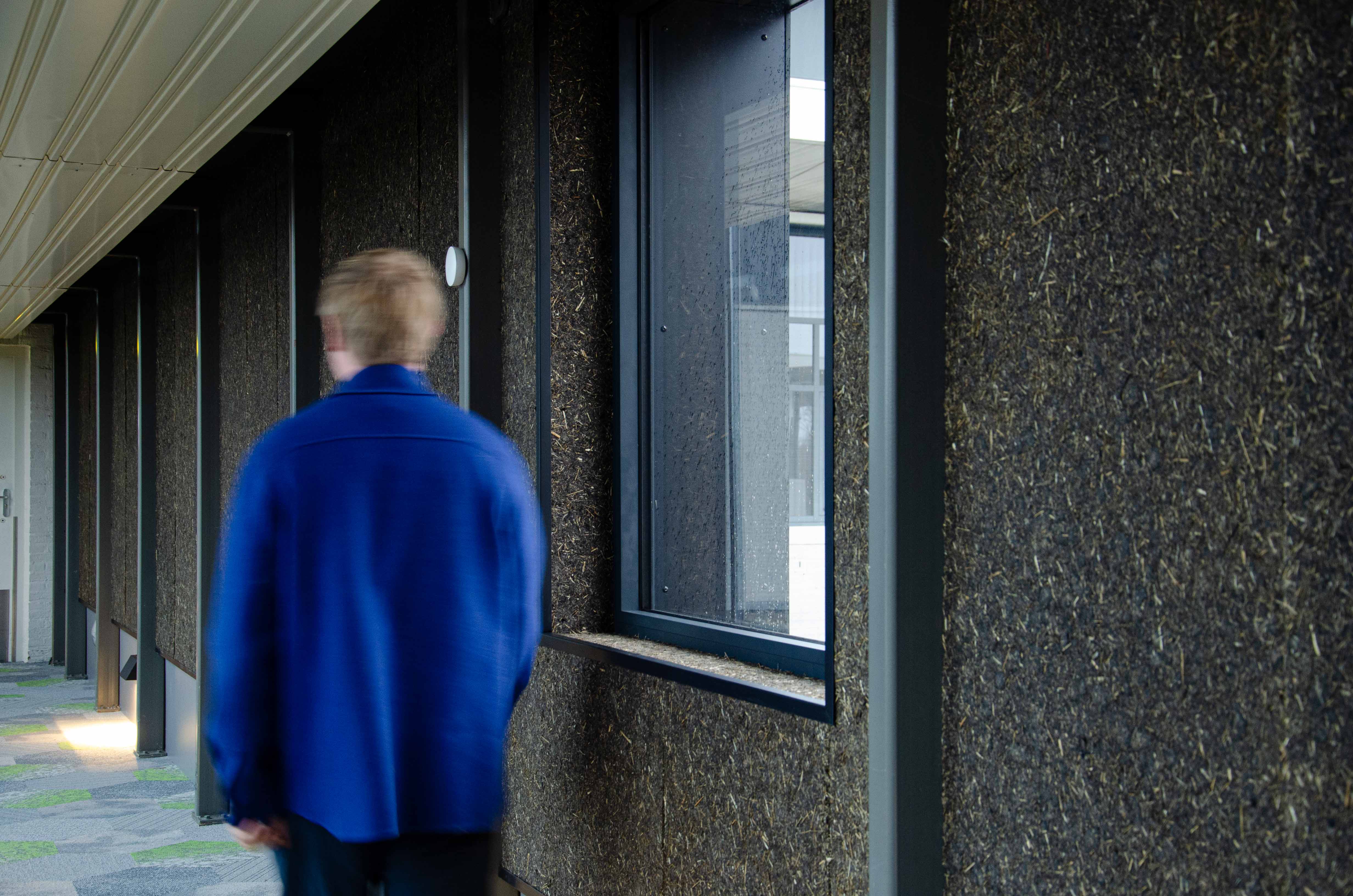 All raw materials are sourced within a 200km radius of manufacture, reinforcing the project’s emphasis on regional supply chains and reduced transport impact. Each square metre reportedly stores around 7kg of CO₂, which is dramatically more than conventional plasterboard and notably lower in embodied carbon than synthetic felt acoustic panels.