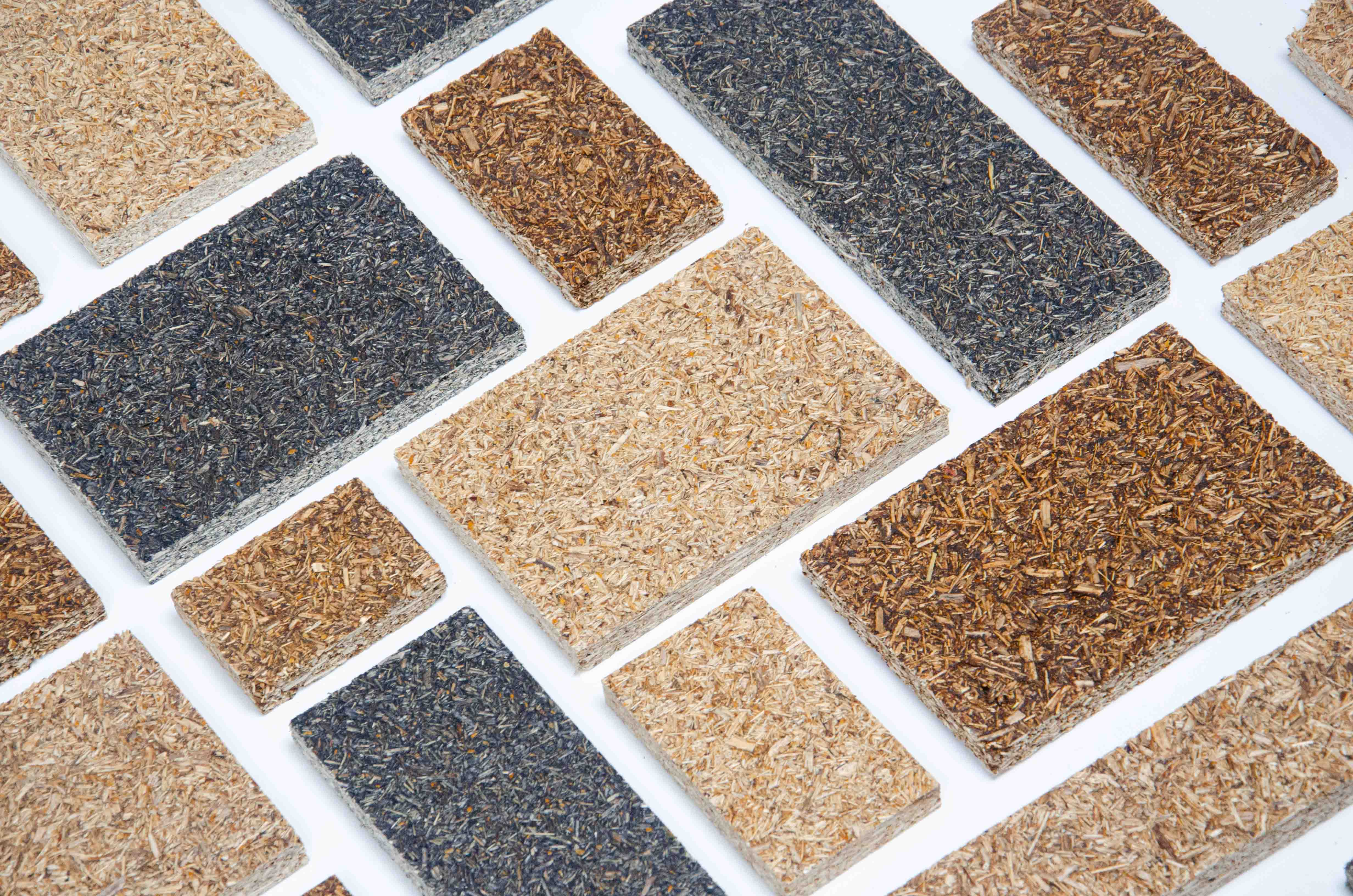 The boards have a very raw aesthetic, not totally unlike that of actual compost materials, although the product name owes more to the fact that they are compostable. Seasonal flower patterns pressed into the surface create limited-edition batches linked to agricultural cycles, giving each panel subtle variation and a clear material narrative. Equally, at the end of use, they can be easily recycled into new boards or reused as design elements.