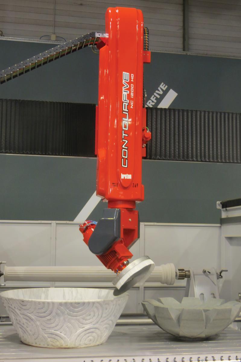 Breton last year established its own operation in Britain for sales, service and support of its machines. Its worldwide sales last year topped €200million. This year looks likely to be just as successful and among the machines sold in the UK lately are a Breton Easy Wire single wire saw to Fyfe Glenrock in Scotland; an NC 300 K40 Robocup to Granite House near Southport, Merseyside; a Combicut combined saw and waterjet and a Contourbreton NC 300 K26 contouring machine to the Solid Surface division of Oliver Exorna Group in Northern Ireland (where Breton works alongside Pat Swayne).